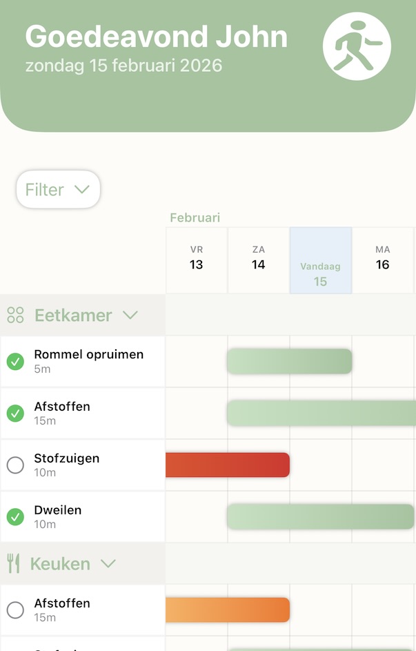 Organiseer taken per kamer. Van de keuken tot de slaapkamer, houd overzicht over het hele huis in één oogopslag.